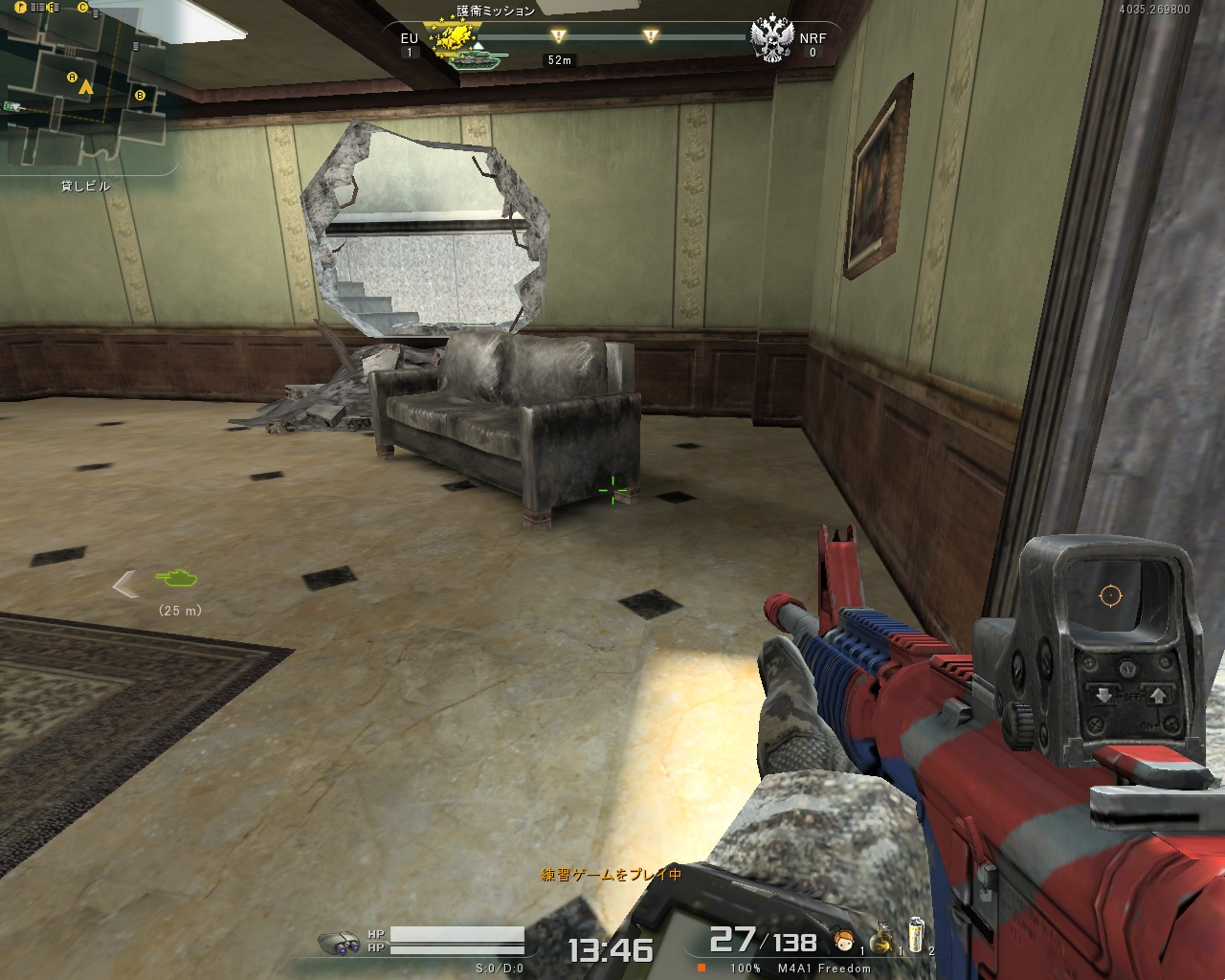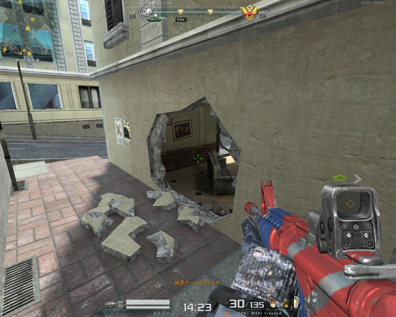 こちら側としては相手が出てくる場所は容易に予想がつきますので、両者で見つけてから撃ち始めるまでの時間に差が出てきますし、メインから撃たれてHPを削られた状態で来る敵も多く、撃ち勝てやすいです。