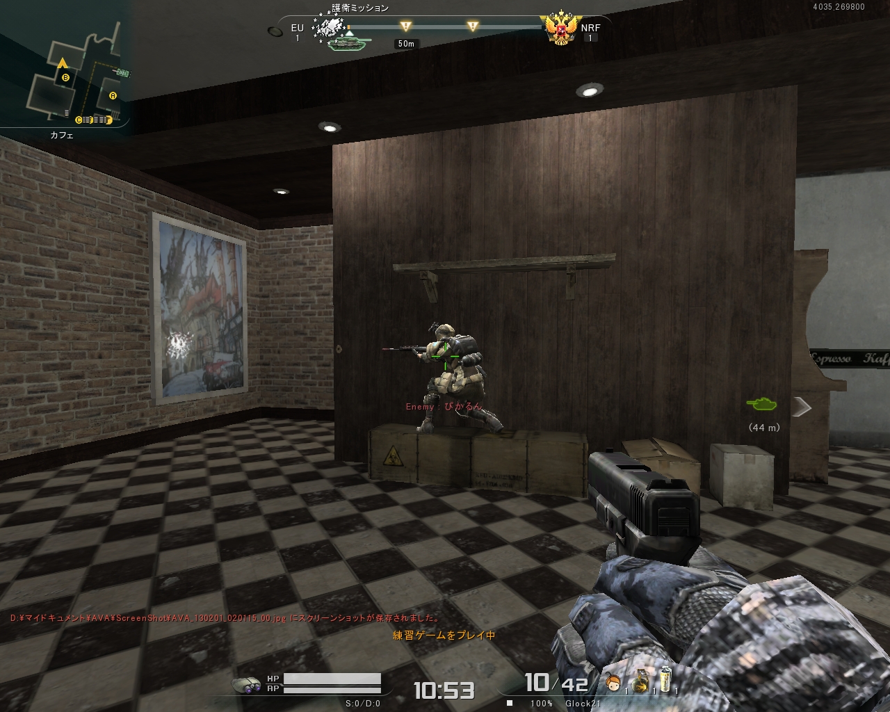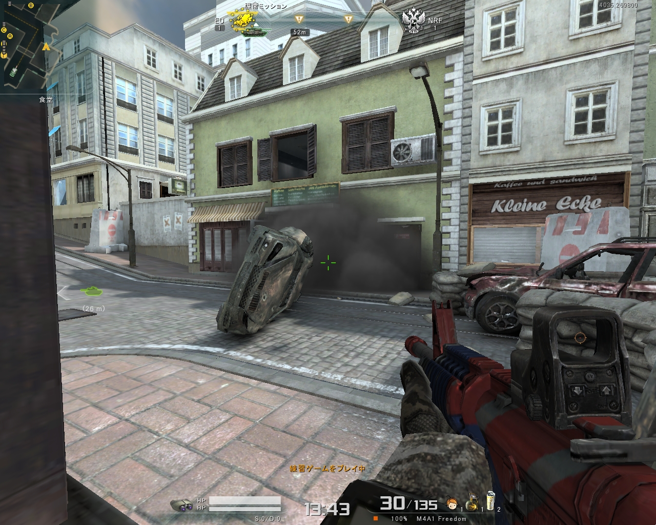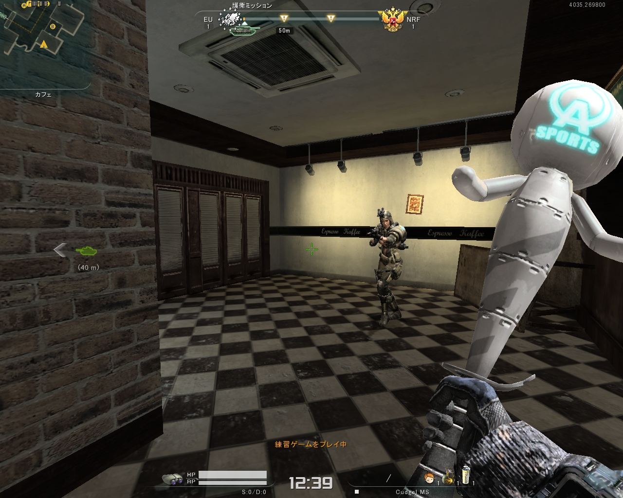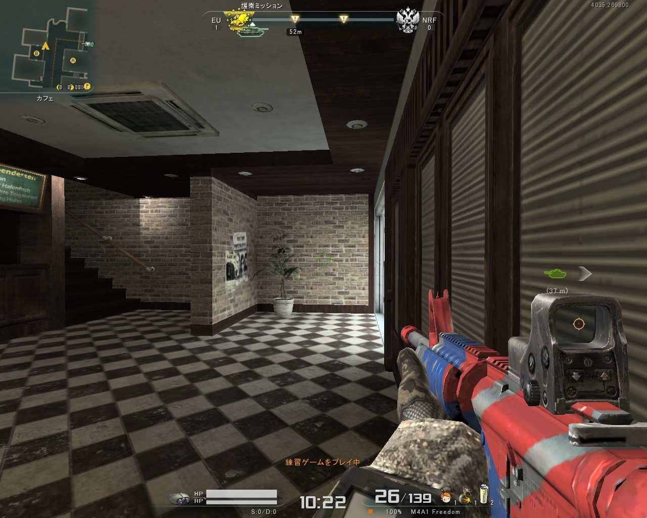 カフェ上の移動する敵、テラスにくる敵を狙えます。意外と当てやすいです。