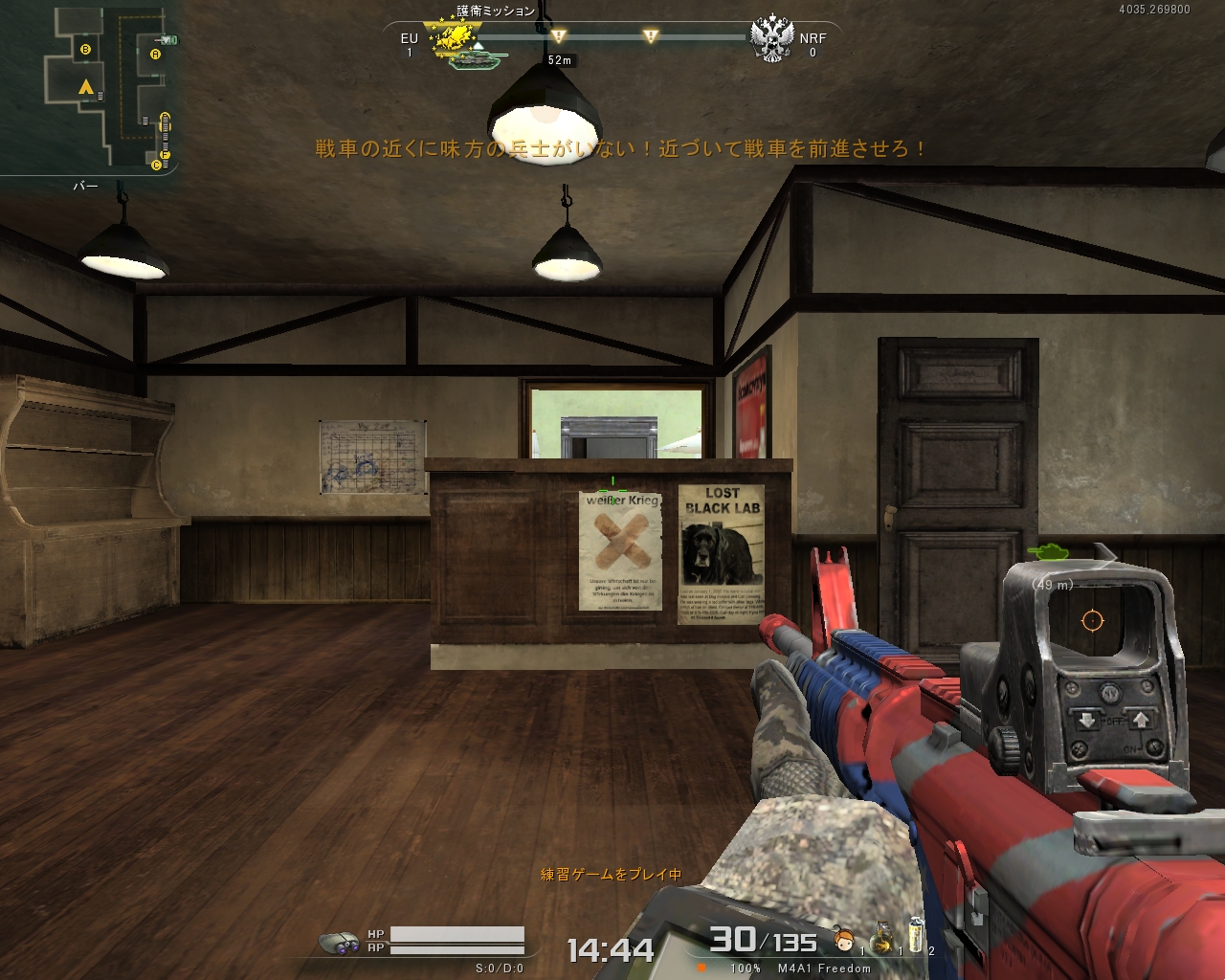 ただ右に出すぎるとバー入り口から敵分隊長に狙われる可能性も。