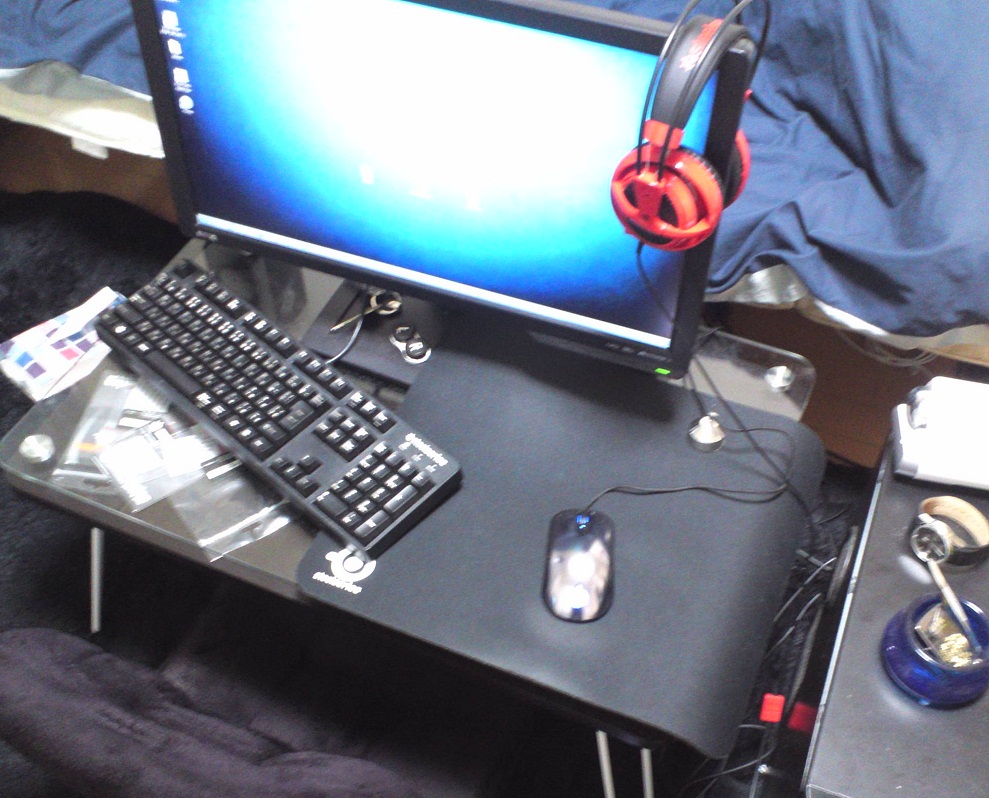 クラン戦など集中してやりたい時は少し前のめりな姿勢でやってます。