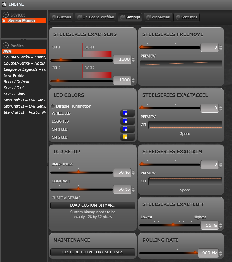 ↑がSteelSeries Engineでのマウス(SENSEI)設定。