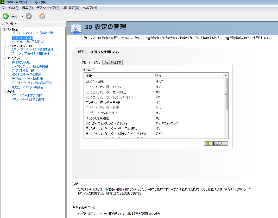 ↑がNVIDIAの設定(´ω`)