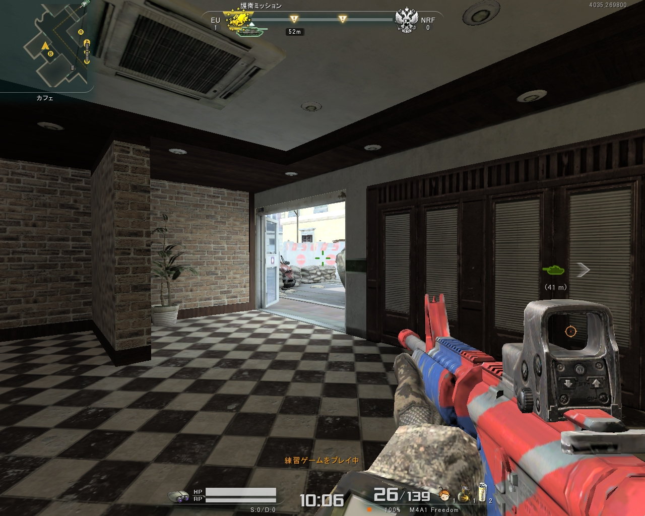 カフェ上の移動する敵、テラスにくる敵を狙えます。意外と当てやすいです。